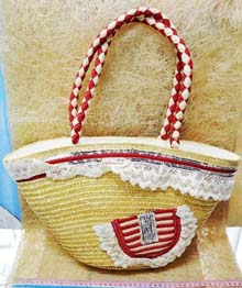 滾布手把草編包